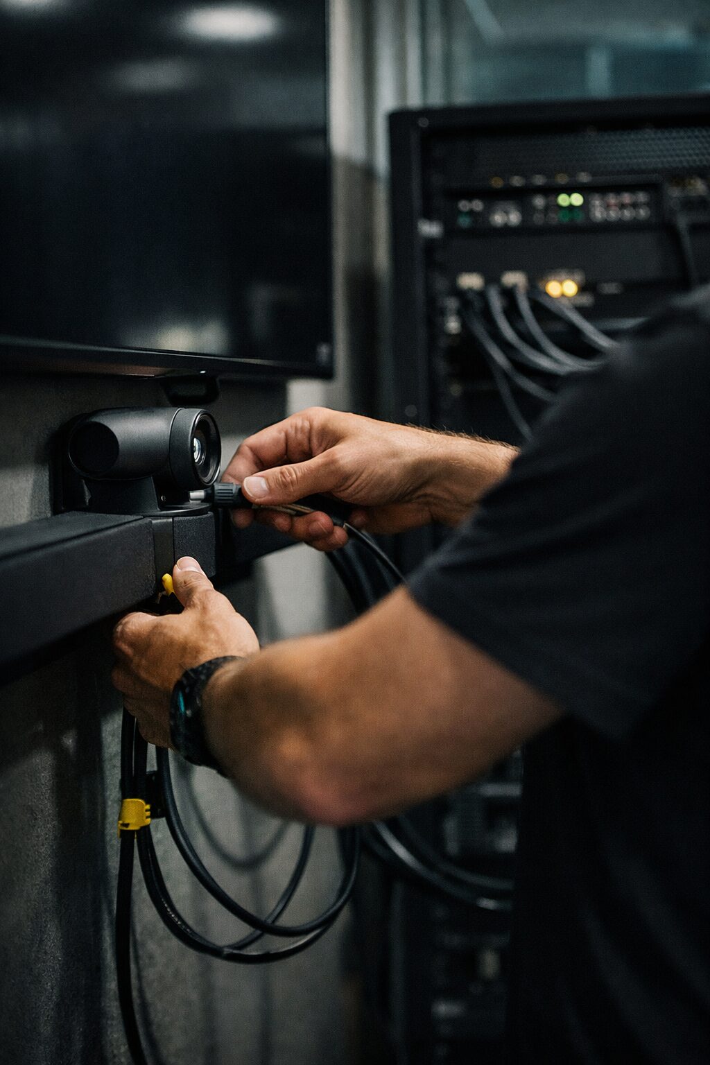Realizujemy stałe instalacje AV i techniczne w salach konferencyjnych, biurach i obiektach, dbając o jakość, porządek i niezawodne działanie systemów.